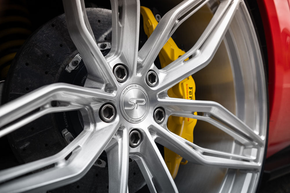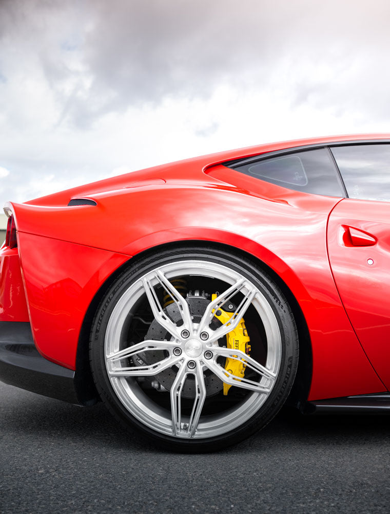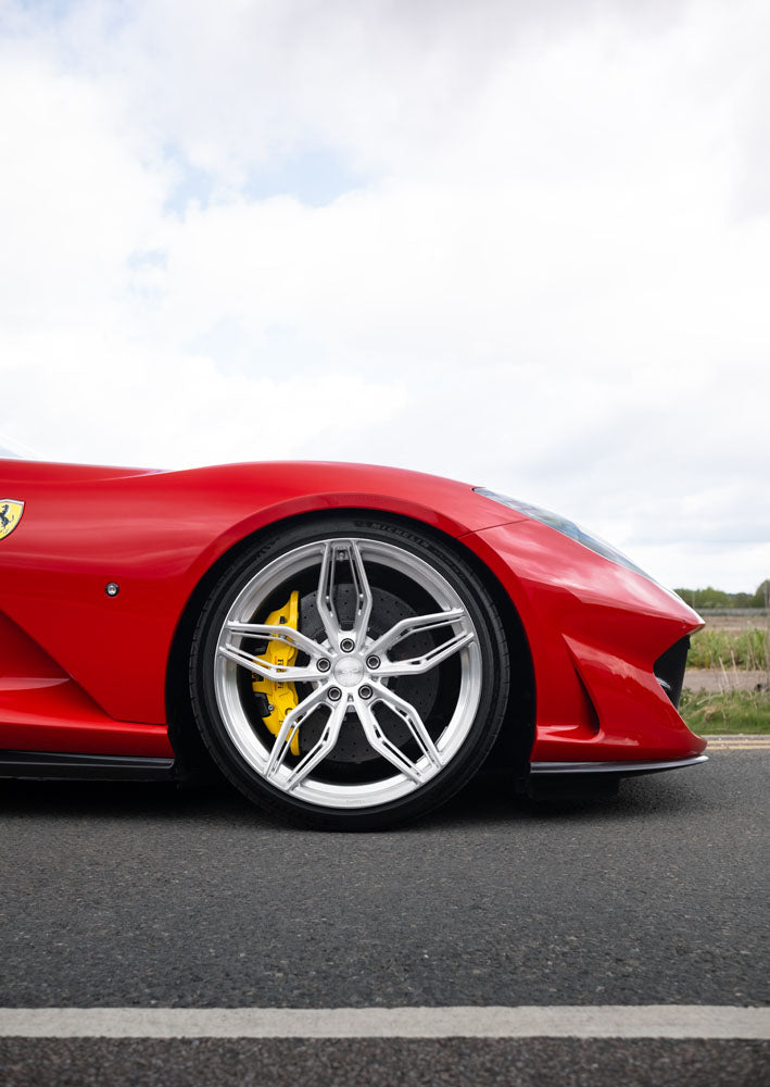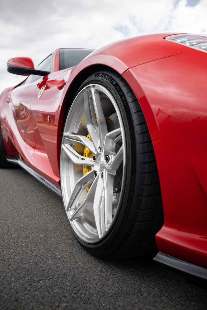 The Ferrari 812 Superfast is an absolute monster with it's 6.5L V12 engine and this example is absolutely stunning in Rosso Corsa paint and uses our stunning SP3.1 Forged aluminium wheels finished in brushed aluminium.
