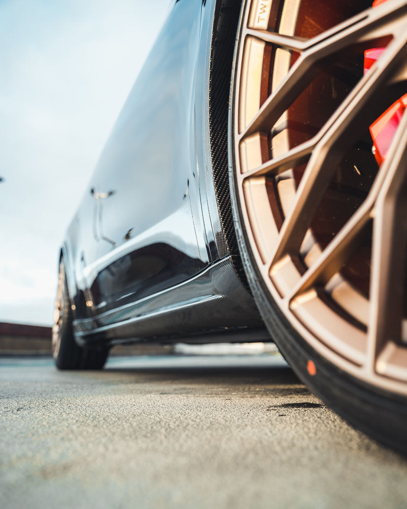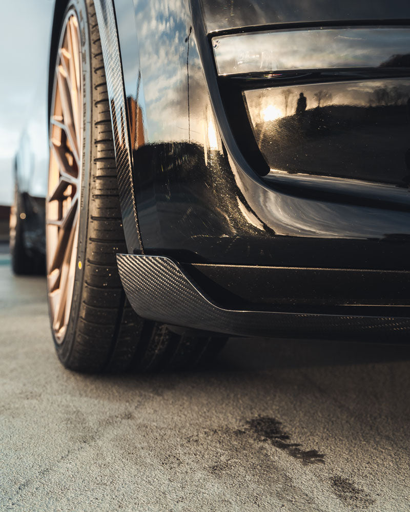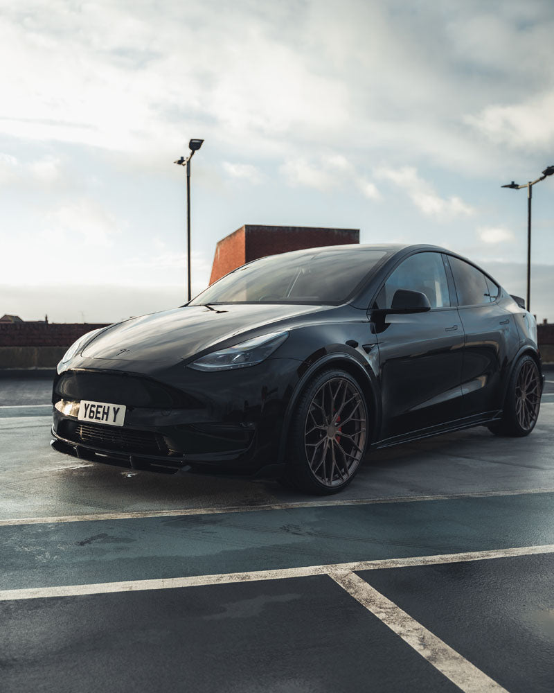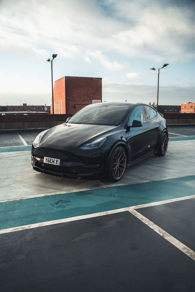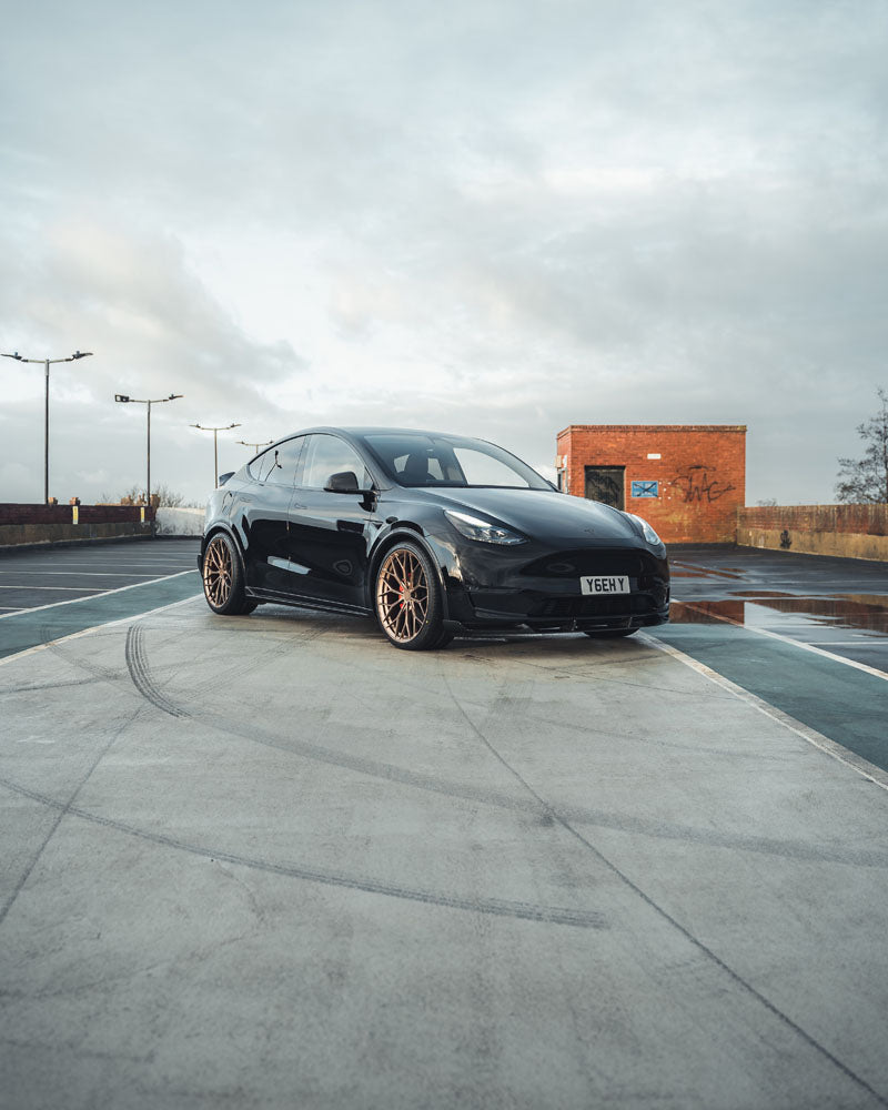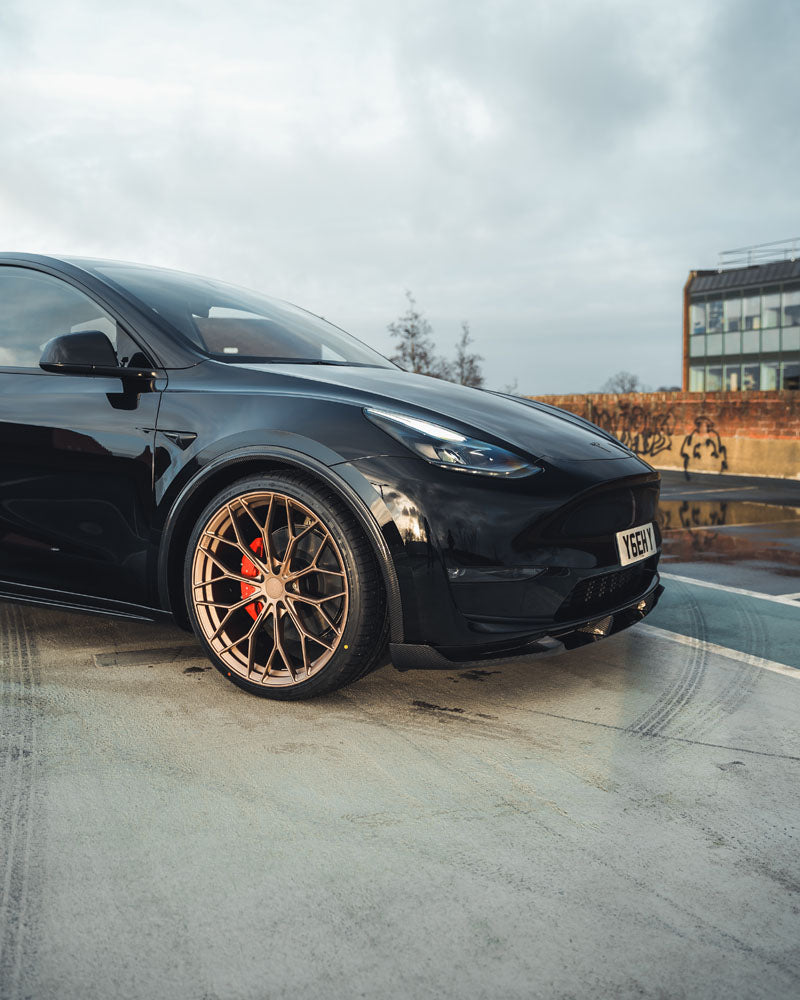2 This Tesla Model Y with a full carbon fibre kit from CT Carbon, featuring our first set of SP Two monoblock forged alloy wheels finished in a copper colour.